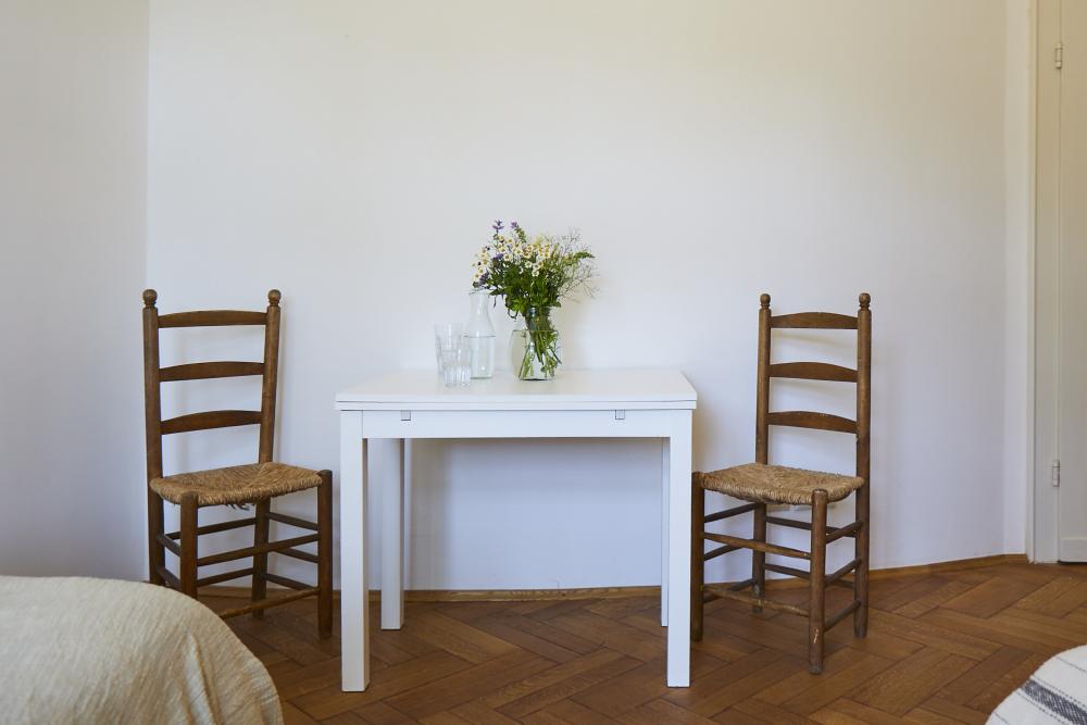 - Die große Wohnküche im Vorraum mit Platz für bis zu 14 Personen wird zusammen mit den 4 Zimmern der Erdgeschoss-Wohnung Ludwig van Beethoven genutzt.