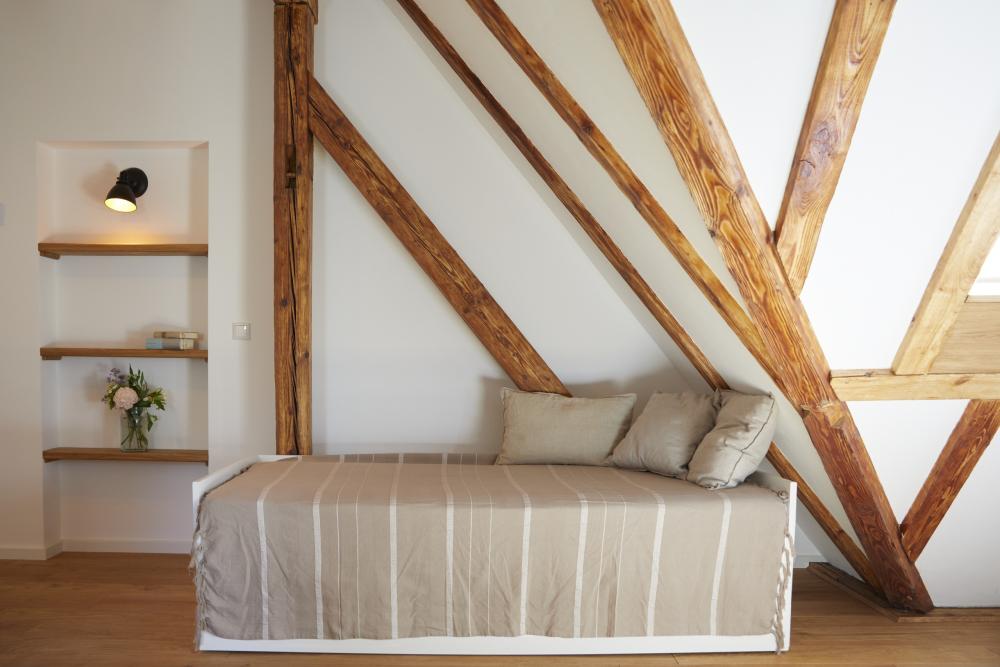 Dieses Zimmer ist nach dem Schriftsteller (* 1894 in Berg; † 1967 in New York) und großen Sohn der Gemeinde Berg benannt und wurde, wie alle Bäder und Zimmer, 2022 von Grund auf renoviert. Dabei haben wir die originalen Holzbalken des Dachstuhls freigelegt, was es zu einem der individuellsten Zimmer von Schloss Mörlbach macht.