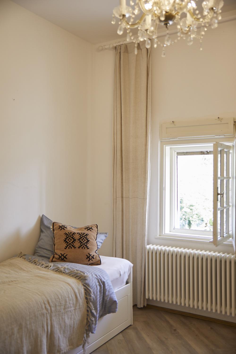 Dieses Zimmer mit Blick auf die Terrasse und in den Garten liegt hinter einem schmalen Korridor und direkt neben den Bädern. Es ist wegen seiner Lage abseits der Wohnküche besonders ruhig. Zu Zeiten von ART CONCERTS (1986-2010, Firmensitz in Mörlbach 2000-2010) befand sich dort der schwere Tresor und ein Teil der Buchhaltung.